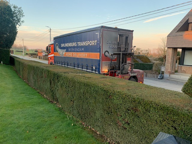 Onze chauffeurs voorzien een drempellevering en plaatsen de bestelling aan de oprit of in de buurt van de woning waar er plaats is voorzien. Dit kan zijn aan de oprit, op de stoep of op een parkeerplaats.