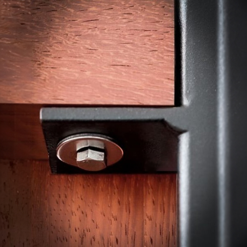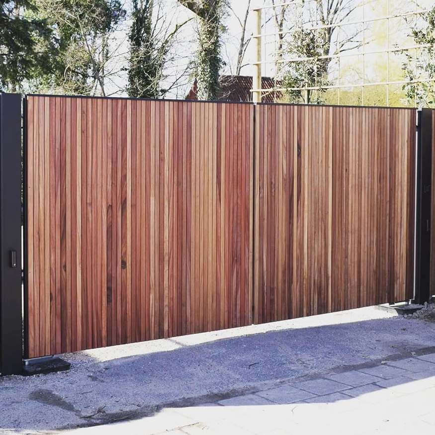 Thermo-ayous is een tropisch hardhout dat bekendstaat om zijn uitstekende stabiliteit na thermische behandeling. Het hout is vormvast en vrij van knopen, waardoor deze poort samen met het metalen frame een levenslange investering is.