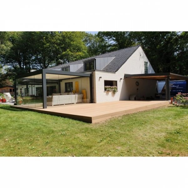 Met de bamboe composiet terrasplanken ‘sand’, krijgt u een duurzaam en stevig terras met de typische, zandkleurige uitstraling. Aan de ene kant ziet u een effen oppervlak voor een modern resultaat, maar de andere kant lijkt op het reliëf van hout. Op die manier kunt u kiezen tussen een natuurlijke uitstraling of een moderne look. De combinatie tussen kuststof en het composiet zorgt voor een erg stevige plank met dezelfde duurzaamheidklasse als tropisch hardhout. Zo zal uw terras meer dan 25 jaar meegaan! Deze terrasplanken zijn te bevestigen met de gewone clips of met het iDecking clicksysteem. De gewone clips bevestigt u aan de zijkant van iedere plank in de uitgefreesde lijn. Het iDecking clicksysteem is zelfs nog exclusiever, want deze planken klikken vast aan de onderstructuur. Op die manier zijn uw terrasplanken erg eenvoudig te installeren en ook herstellingen kunnen vlot gebeuren. Deze planken hebben standaard een lengte van 220 centimeter, maar de planken met gewone clip hebben een breedte van 14 centimeter en die met het iDecking clicksysteem hebben een breedte van 13,7 centimeter. Wanneer u dit terras per vierkante meter bestelt, dan houden we rekening met een open voeg van 0,75 centimeter tussen alle planken.