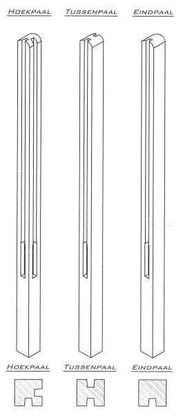 • Tussenpaal (2 gleuven tegenover elkaar) – voor het verbinden van opeenvolgende panelen