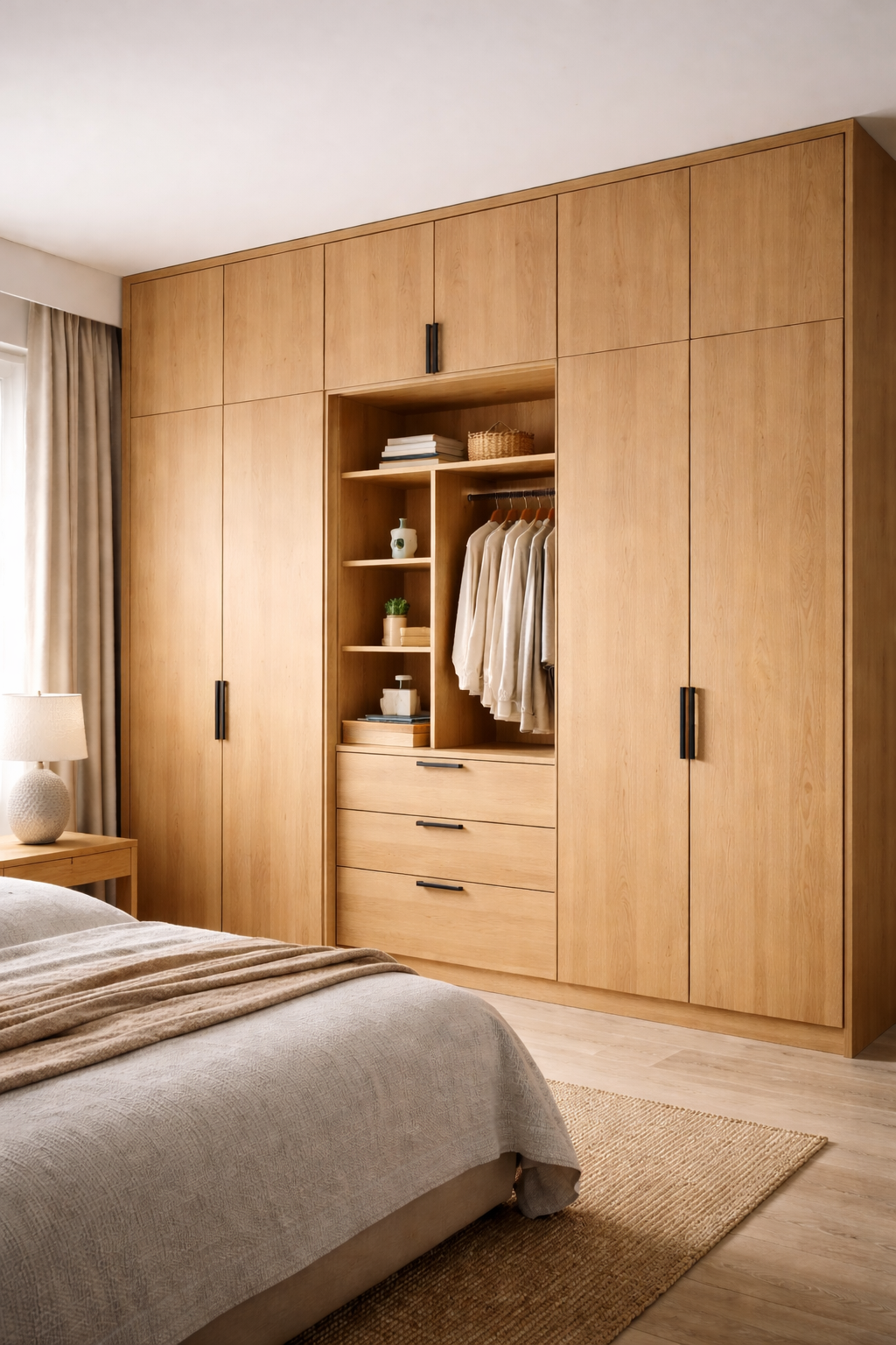Laat het paneel acclimatiseren in de ruimte waar het zal worden verwerkt, zodat het hout kan wennen aan temperatuur en luchtvochtigheid. Houd bij montage rekening met de natuurlijke werking van massief hout door flexibele bevestigingsmethoden te gebruiken. Afwerking met olie, lak of vernis beschermt het oppervlak en versterkt de warme uitstraling van het beukenhout. Vermijd langdurige blootstelling aan vocht en gebruik beschermpads onder accessoires of toestellen om krassen te voorkomen. Met de juiste zorg behoudt dit beukenpaneel zijn vorm, uitstraling en duurzaamheid voor vele jaren.
