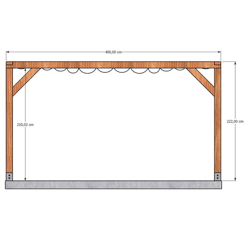 De pergola is ontworpen voor een vlotte en gebruiksvriendelijke plaatsing. Zorg voor een stabiele basis, bij voorkeur uit beton, aangezien dit zorgt voor een betrouwbare verankering en optimale stevigheid. Bevestig de vier paalhouders zorgvuldig op de ondergrond met de keilankers.