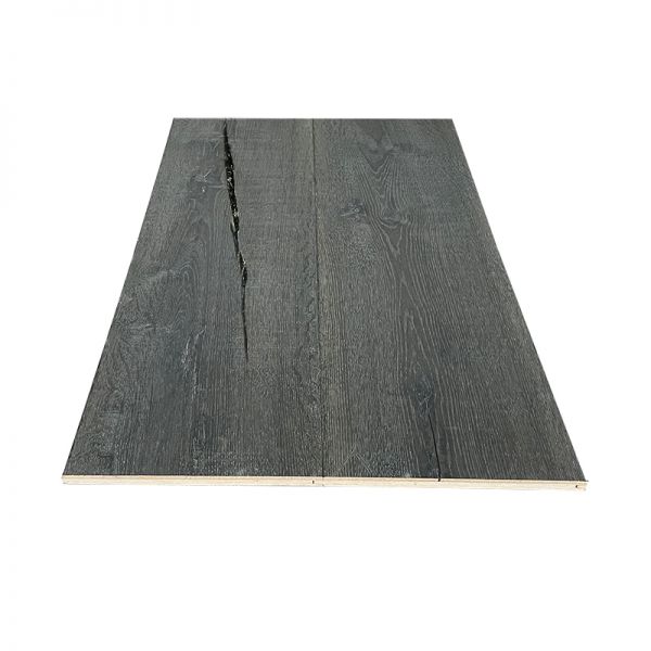 Een stevige eiken vloer met karakter voor uw interieur? Dan bent u bij de Ebony meerlaagse parketvloer aan het juiste adres. Deze rustieke planken hebben een prachtige, donkergrijze kleur, waarbij de prachtige houttekening nog mooi tot z’n recht komt. Deze planken zijn eigenlijk gemaakt uit meerdere laagjes hout die samen zitten geperst tot een stevige plank. Zo kunnen we hout gaan recycleren dat normaal verloren zou gaan. Kortom, de ultieme ecologische plank voor uw vloer! Hier hebt u de keuze tussen twee verschillende uitstralingen: Rustiek A/B of Fond de Wagon. Rustiek A/B heeft een netter oppervlak, maar wel met knopen en af en toe een kleine scheur. De Fond de Wagon is onze meest rustieke plank, met grote knopen en barsten voor een landelijke uitstraling. Deze planken zijn ook iets budgetvriendelijker, maar zien er nog steeds prachtig uit in uw interieur. Deze planken hebben standaard een dikte van 1,5 centimeter, maar de breedte kunt u wel zelf kiezen: 19 centimeter of 25 centimeter. Welke breedte u kiest, hangt af van uw eigen smaak, want op dat vlak is er geen verschil in kwaliteit of stevigheid. Welke afmeting u ook kiest, deze vloeren bestelt u per vierkante meter. Vergeet zeker niet de bijhorende parketlijm om de plaatsing van uw parketvloer te vergemakkelijken. Bovendien kan een plint helpen om de overgang van de vloer naar de muur professioneel af te werken.