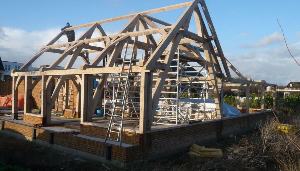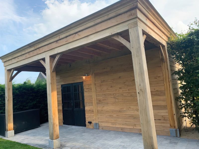 eiken balken om een constructie te maken voor jouw bijgebouw, poolhouse of