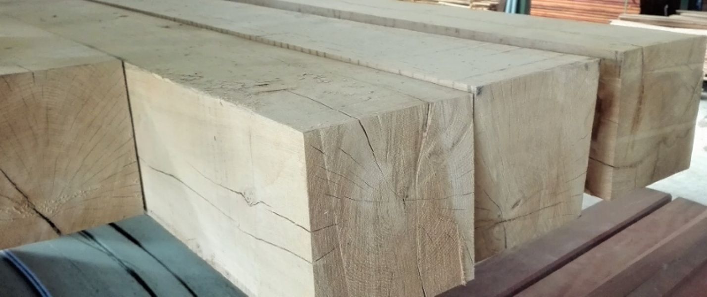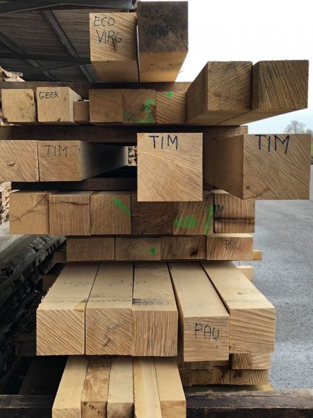 Deze eiken fijnbezaagde balken hebben dikte en breedte van