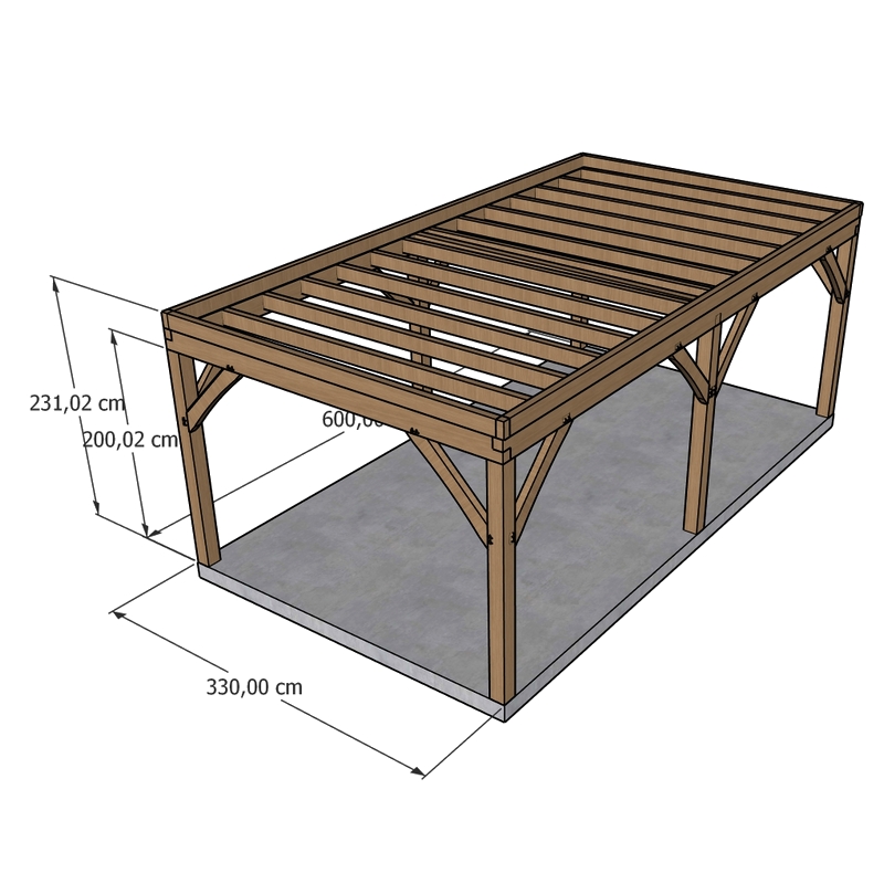 Met dit montageklare eiken gebinte bouw je zelf vlot een karaktervolle overkapping.