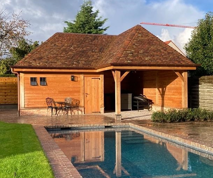 Dit combineert de luxe van eik (voor het geraamte) met een efficiëntere, budgetvriendelijkere dakconstructie uit lariks (douglas).
