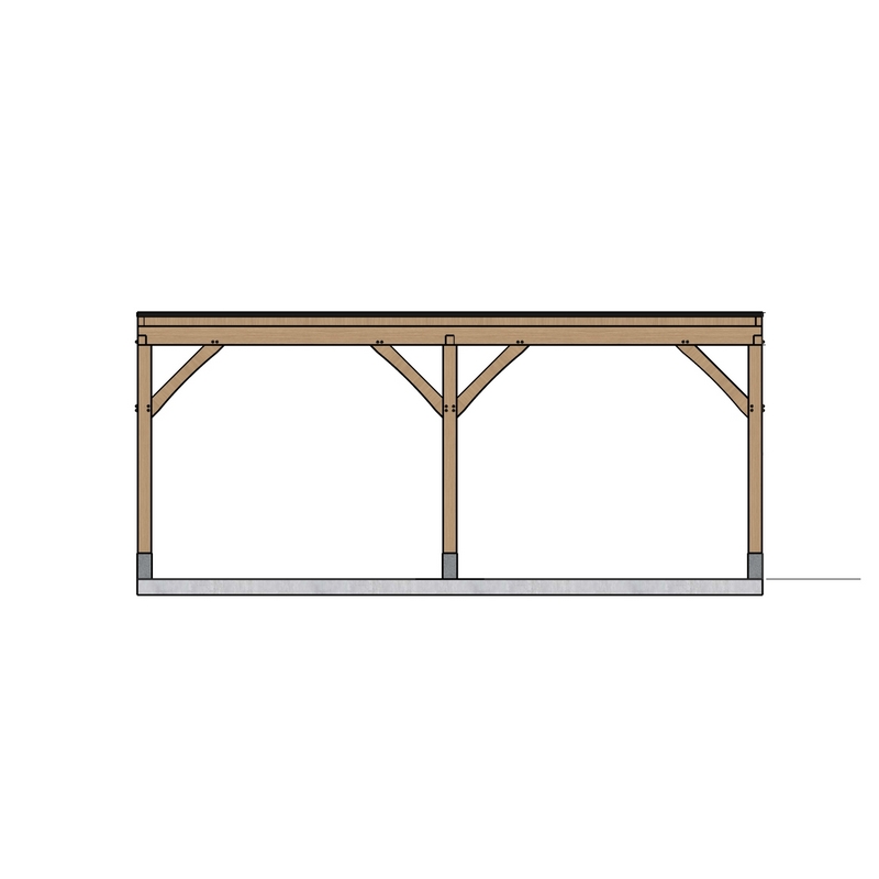 Deze carport is volledig opgebouwd uit vers geschaafde, massieve eiken balken met een fijne nerf en natuurlijke uitstraling.