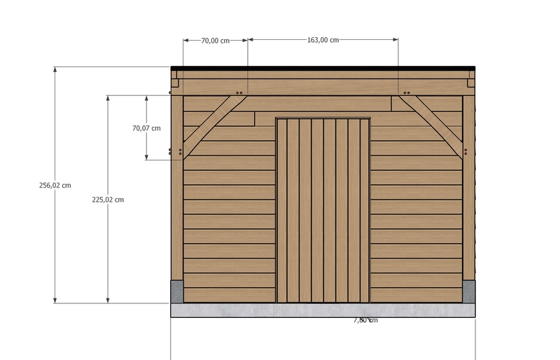 Voor het kader van de berging wordt gebruikgemaakt van geïmpregneerd SLS-hout (38 × 89 mm) met een deurkader uit Douglas (58 × 145 mm).