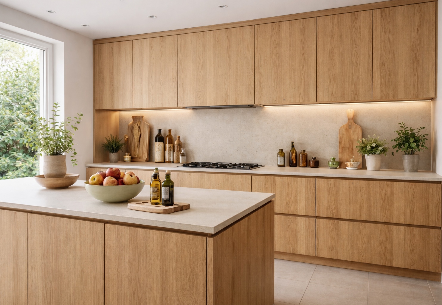 Gebruik een fijn zaagblad om de dunne fineerlaag splintervrij te verwerken en werk zichtbare randen af met bijpassende fineerkant. Laat de plaat acclimatiseren voor montage zodat temperatuur en vochtverschillen geen spanning veroorzaken. MDF-fineerpanelen reageren positief op olie of matte lak, wat de dosse vlamstructuur verdiept en beschermt. Zorg bij grotere fronten voor voldoende scharnieren of een degelijk metalen kader zodat de deuren mooi vlak blijven. Zo ontstaat een warm en authentiek eiken resultaat met een minimale dikte en maximale stabiliteit.