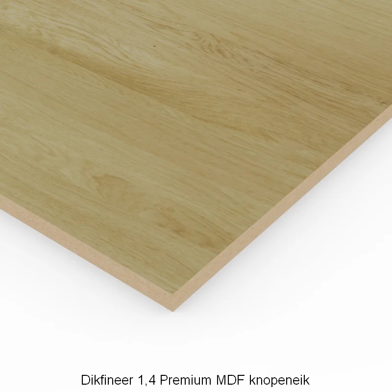 Deze gefineerde MDF-panelen in 'knopeneik' bieden een robuuste en karaktervolle uitstraling van eikenhout, gecombineerd met de stabiliteit en het gemak van MDF. Deze panelen zijn ideaal voor interieurprojecten die authenticiteit en een stoere look vereisen.