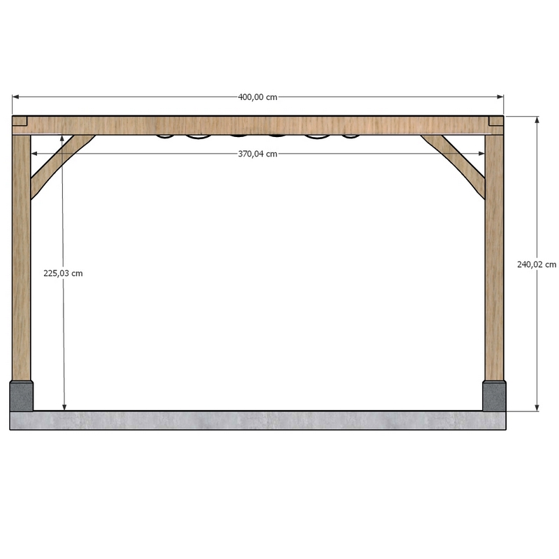 Voor maximale stabiliteit monteer je de pergola bij voorkeur op sokkels van 25 cm hoog. Die zorgen voor extra bescherming tegen opstijgend vocht en insecten én creëren een elegant contrast tussen warm hout en steen.