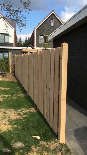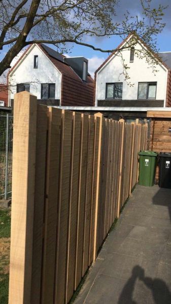 Een traditioneel tuinscherm gemaakt van uiterst duurzaam inlands eik. De garantie voor jarenlang een prachtige onderhoudsvrije afsluiting. Het behoort tot duurzaamheidsklasse 2 en is daarom een hoogwaardig alternatief voor hardhouten tuinschermen. De kleur en structuur van het hout zorgen voor een exclusieve en natuurlijke uitstraling van uw tuinscherm. Ook zal dit hout na verloop van tijd vergrijzen. Het hout is geschaafd en de kanten zijn afgerond. Deze eiken panelen zijn geheel met RVS geschroefd. Houtsoort: Europese eik De houtmaat is 20 x 200 mm. Deze eiken panelen zijn leverbaar in diverse afmetingen en modellen. De bijpassende eiken palen hebben een diameter van 10 x 10 cm. De palen zijn fijnbezaagd en voorzien van een diamantkop. De eiken schermen kunnen onbehandeld geplaatst worden. Plaatsing zowel verticaal als horizontaal mogelijk.