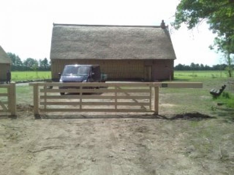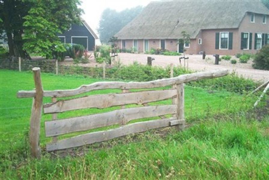 Een authentiek eiken landhek, dat nog op de oude ambachtelijke manier gemaakt wordt. Bij het gedisselde eiken wringhek blijft de oorspronkelijke vorm van het hout zichtbaar. Ook de ophanging en de wijze van sluiten is al eeuwenlang in gebruik. Bij een eiken wringhek zorgt het uitstekende tegenwicht aan de bovenbalk voor de hanteerbaarheid van het brede hek.