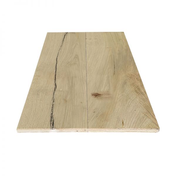 Voorzie uw interieur van een duurzame, stevige vloer uit eikenhout. Deze planken uit onbehandeld eikenhout zijn onze meest veelzijdige parketvloeren, want u bepaalt zelf de plaatsing en uitstraling. Deze parketvloer bestaat eigenlijk uit meerdere lagen hout die onder hoge druk bij elkaar wordt gedrukt. Op die manier kunnen we hout gaan recycleren die anders verloren zou gaan. Echt een ecologisch proces dus! Geen zorgen, we maken wel nog steeds gebruik van het Franse eikenhout om de duurzaamheid en de kwaliteit zo hoog mogelijk te houden. Qua afwerking hebt u de keuze tussen de Rustiek A/B en Fond de Wagon. Rustiek A/B heeft matig gezonde knopen en af en toe een barst. Fond de Wagon is dan weer nog rustieker, met grotere knopen en barsten over de planken. Deze soort vloer past perfect bij een landelijk interieur en het is ook een ideale oplossing voor klussers met een beperkt budget. Deze eikenhouten vloer heeft standaard een dikte van 1,5 centimeter. Wat betreft de breedte kunt u kiezen tussen 19 centimeter en 25 centimeter. Elke vloer bestelt u per vierkante meter. Het gaat hier dus om onbehandelde parketplanken om uw vloer op te bouwen. Wij raden echter wel aan om na de plaatsing uw vloer te behandelen met een olie of beits en een beschermende wax om de duurzaamheid en klasse van uw project te verhogen. Op die manier bepaalt u ook de uitstraling van uw eigen vloer.