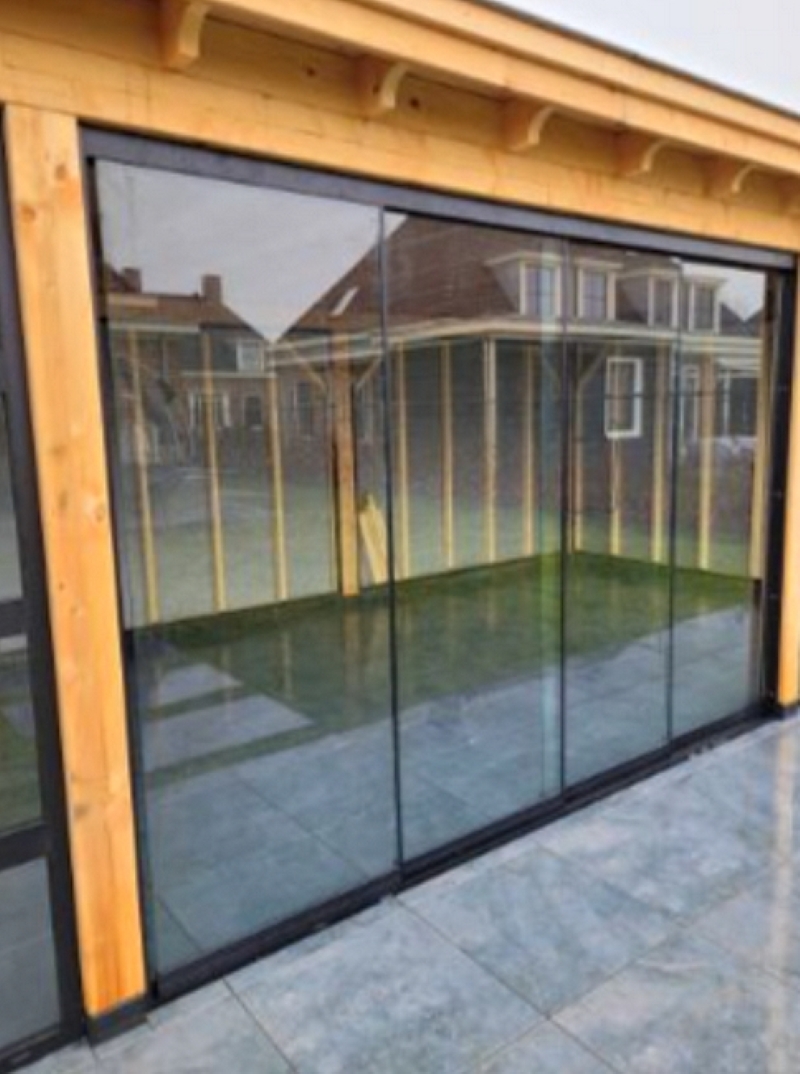 Deze glazen schuifpanelen vormen een elegante oplossing om een buitenruimte af te schermen zonder licht te verliezen. Dankzij de slanke zwarte profielen behouden de panelen een moderne en luchtige uitstraling terwijl ze toch bescherming bieden tegen wind en regen. Het veiligheidsglas garandeert een stevige en veilige constructie, ideaal voor gebruik in lounges, veranda’s en andere tuinprojecten. De panelen schuiven soepel open en dicht, waardoor je de ruimte eenvoudig kan aanpassen aan het weer of de gewenste openheid. Dankzij de verschillende beschikbare breedtes passen ze moeiteloos in uiteenlopende ontwerpen.