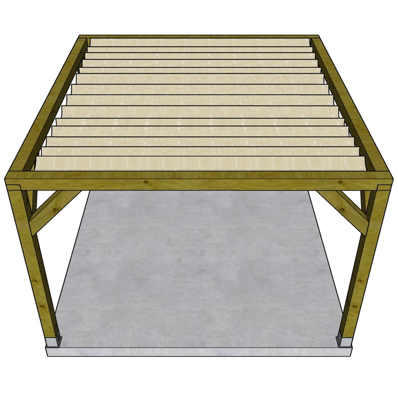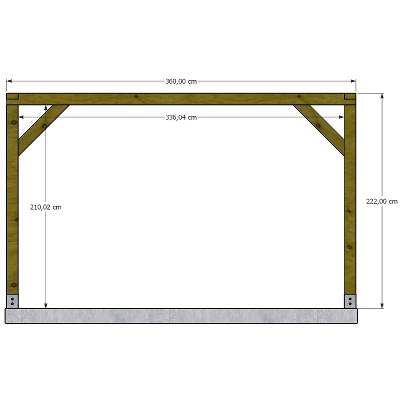 Kies voor een stevige ondergrond, zoals beton, voor optimale stabiliteit. Bevestig de paalvoeten met de meegeleverde keilankers. Plaats de palen recht en monteer daarna de bovenbalken en schoren.