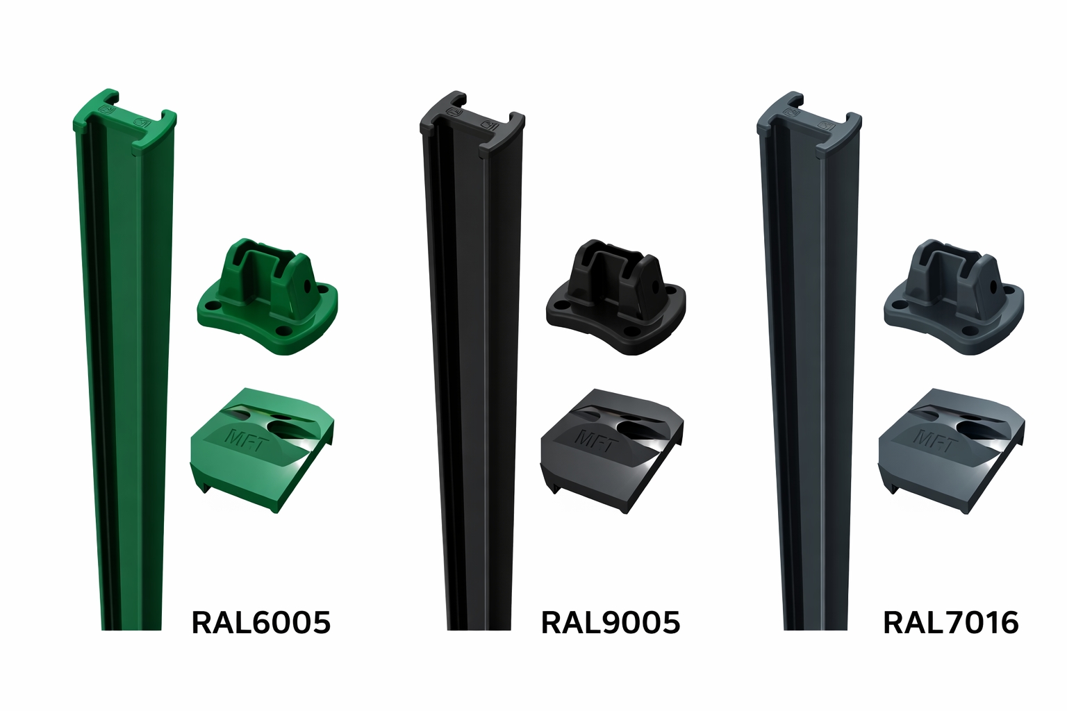 Net als de 3D-panelen ondergaan deze palen eerst een verzinkingsproces en krijgen ze daarna een duurzame coating in een standaard Kopal-kleur. Deze dubbele bescherming maakt de palen bijzonder goed bestand tegen regen en corrosie en verlengt hun levensduur aanzienlijk.