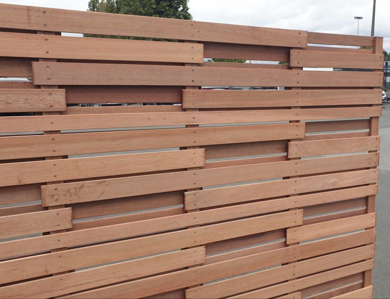 Deze hardhouten tuinschermen zorgen voor een warme uitstraling, ze ogen mooi en zijn ook nog eens vrij eenvoudig te monteren. Deze tuinschermen zijn vervaardigd uit Keruing hardhout. Deze hardhoutsoort is afkomstig uit Zuidoost-Azië. Het hout werd kunstmatig gedroogd om een hoge stabiliteit en kwaliteit van het hout te verkrijgen. Dit hout heeft het FSC® certificaat en is dus afkomstig uit duurzaam beheerde bossen. De hardhouten latten zijn horizontaal bevestigd, geschaafd en RVS geschroefd. Na verloop van tijd zal het scherm gaan vergrijzen onder invloed van de zon, echter de duurzaamheid blijft onveranderlijk in stand. Deze schermen zijn 3,6 cm dik, 180 centimeter hoog & 180 centimeter breed. RVS geschroefd. Plaatsing is mogelijk tussen aluminium-, houten of betonnen palen die al dan niet voorzien zijn van een betonplaat.