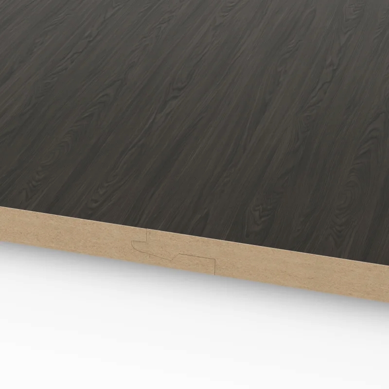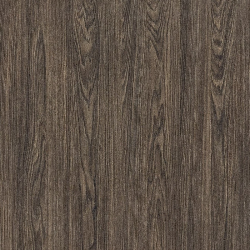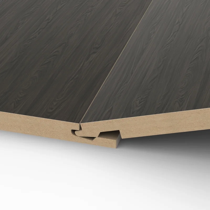 De plaat heeft een diepe donkere kleur die de charme van natuurlijk eikenhout benadrukt. De structuur is een voelbaar en zeer gedetailleerd eikenhoutreliëf. Dit betekent dat de houtnerven en poriën realistisch zijn nagebootst in de krasvaste melaminelaag.