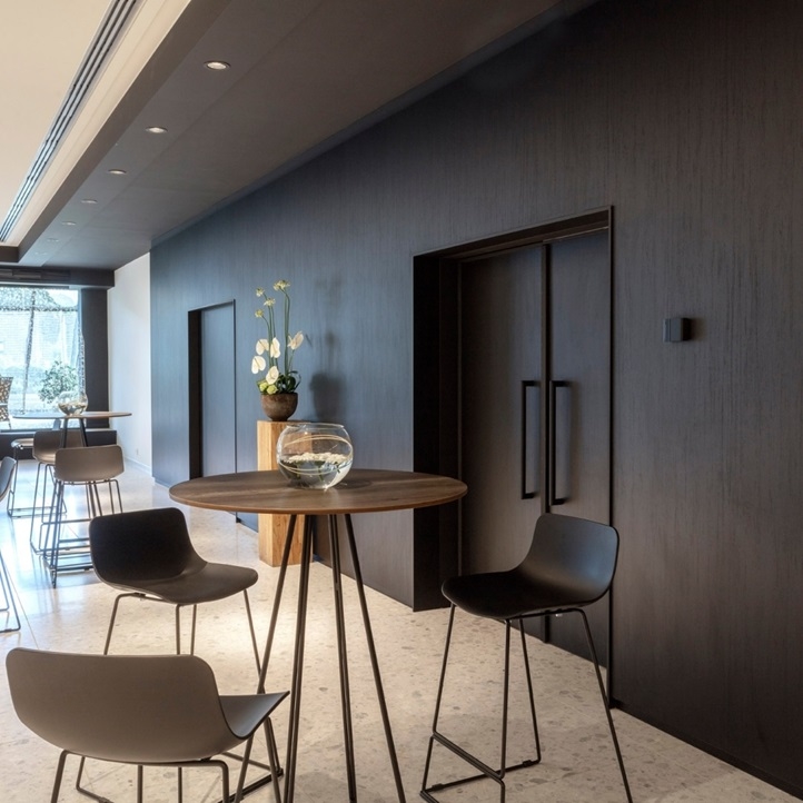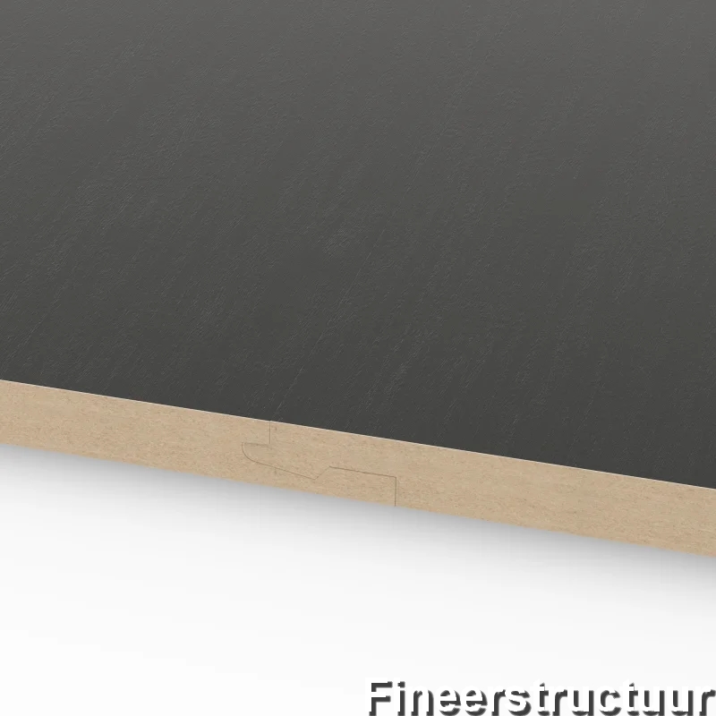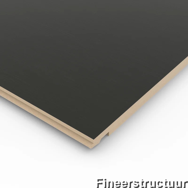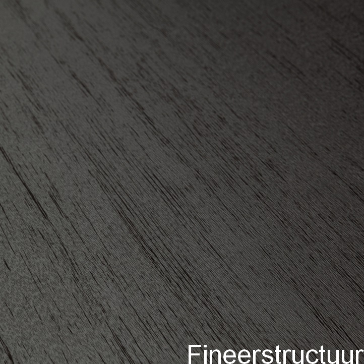 De plaat met fineer-structuur bootst het uiterlijk na van hout dat behandeld is met een fijne Italiaanse lak. Dit creëert een gladdere, luxueuzere afwerking die de diepzwarte kleur nog meer benadrukt.