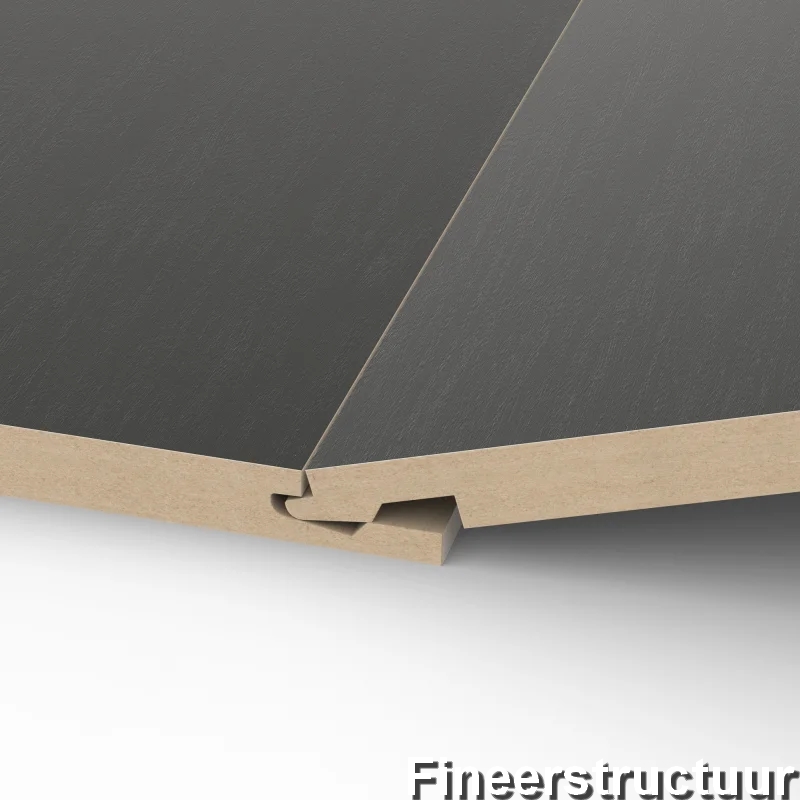 De panelen zijn gebaseerd op een MDF-kern en afgewerkt met een slijtvaste en afwasbare melamine toplaag. Hoewel de panelen geen massief hout zijn, bieden ze een realistische textuurbeleving.