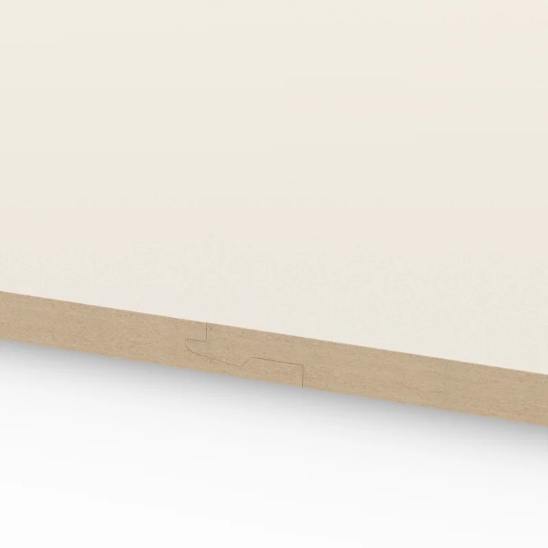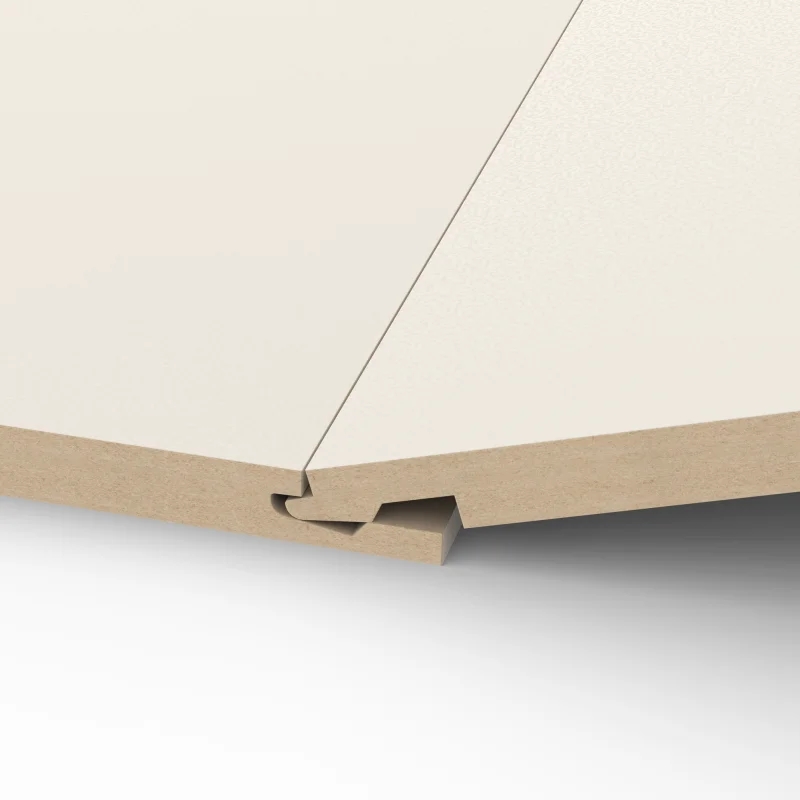 De kern van de panelen bestaat uit kwalitatief MDF met een hoogwaardige melamine afwerking. Door het gepatenteerde Uniclic-profiel sluiten de panelen naadloos op elkaar aan, waardoor een strakke, uniforme en professionele look ontstaat – zonder de nood aan schuren, plamuren of schilderen.