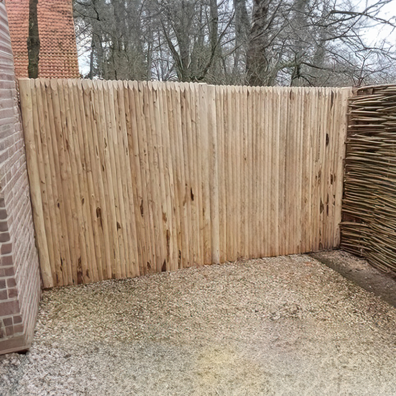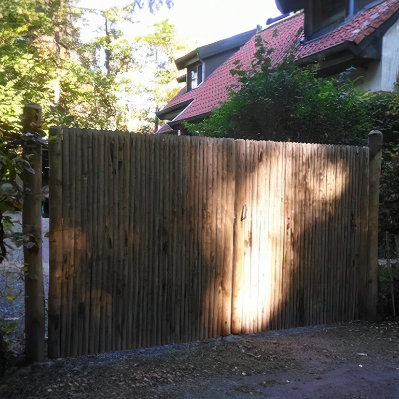 Zoek je een tuinpoort die perfect te combineren valt met jouw kastanje tuinschermen? Dan heb je met onze kastanje verticale tuinpoort volledig gevonden wat je zoekt. Deze tuinpoort wordt vervaardigd in Frankrijk met het hout van de tamme kastanje. Hierdoor kan je rekenen op kastanjehout van de hoogste kwaliteit. De poort is net zoals onze verticale kastanje schermen opgebouwd met gepunte regels. Het frame is gemaakt in een z-structuur. Dankzij de zeer stevige diagonale steker is het uitgesloten dat de poort na x-aantal tijd zal doorhangen. De poort is zeer goed bestand tegen vocht en schimmels. Kastanjehout bevat namelijk looizuur wat hierbij voor een natuurlijke bescherming zorgt. Zo kan deze houten poort onbehandeld worden gemonteerd. Zichtdichtheid = 100%