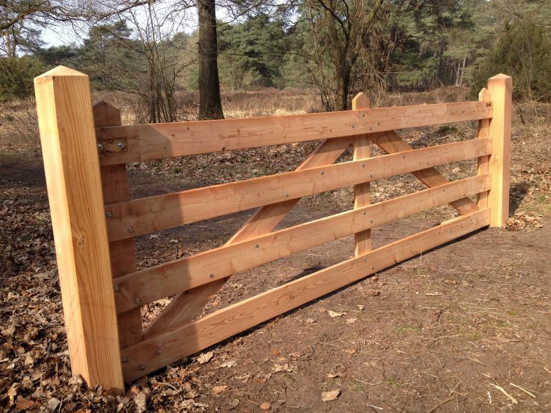 Een traditioneel weidehek in lariks, van oorsprong afkomstig uit Noord-Holland. Het waterlandhek is een eenvoudige, maar degelijke weidepoort die veelal gebruikt wordt voor de afsluiting van een weide of natuurterrein. Door zijn degelijke uitstraling wordt dit landhek in lariks echter ook vaak gekozen voor de afsluiting van het erf op een oprijlaan. Houtsoort: windgedroogde lariks Kwaliteit: vrijwel spinthoutvrij.