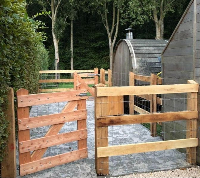 De bijpassende larikspalen kunnen naar uw gewenste afmeting afzonderlijk besteld worden.