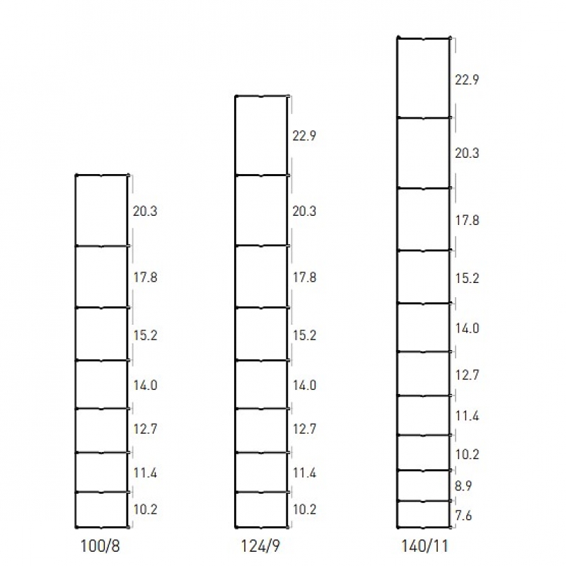 8 horizontale draden om 7 hokjes te verkrijgen. Deze zijn telkens 15 cm breed.