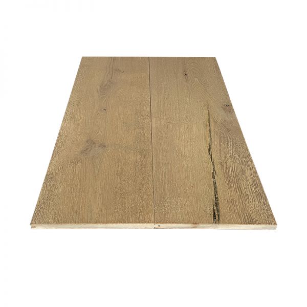 Een ecologische vloer dat toch duurzaam is? Het is mogelijk! Deze Morgan parketvloeren zijn gemaakt uit meerdere laagjes hout die we samenpersen tot een duurzame plank. Op die manier kunnen we hout recycleren die normaal gezien verloren zou gaan. Draag dus ook uw steentje bij aan het milieu terwijl u een stijlvolle vloer realiseert! De Morgan planken zijn voorzien van een medium grijze kleur. De warme bruine houttint komt er nog steeds door, maar de planken lijken al iets vergrijsd te zijn. Ze zijn behandeld met twee lagen hardwax olie om de kleur intens te houden. Bij deze parketvloer kunt u kiezen tussen twee uitstralingen: Rustiek A/B of Fond de Wagon. Rustiek A/B heeft de meest nette uitstraling, maar kan matig gezonde knopen bevatten en af en toe een scheur. De Fond de Wagon heeft een meer rustieke uitstraling, met grotere knopen en af en toe een grotere scheur. Deze planken zijn ideaal voor die landelijke look in uw interieur. Deze vloeren hebben een standaard dikte van 1,5 centimeter, maar u kunt kiezen tussen planken van 19 centimeter en 25 centimeter. Elke vloer bestelt u per vierkante meter. Deze planken zijn erg eenvoudig te plaatsen in uw interieur. Maak gebruik van onze parketlijm voor een duurzame bevestiging aan een houten ondervloer. Na de plaatsing van het parket kunt u de randen afwerken met de bijhorende plinten.