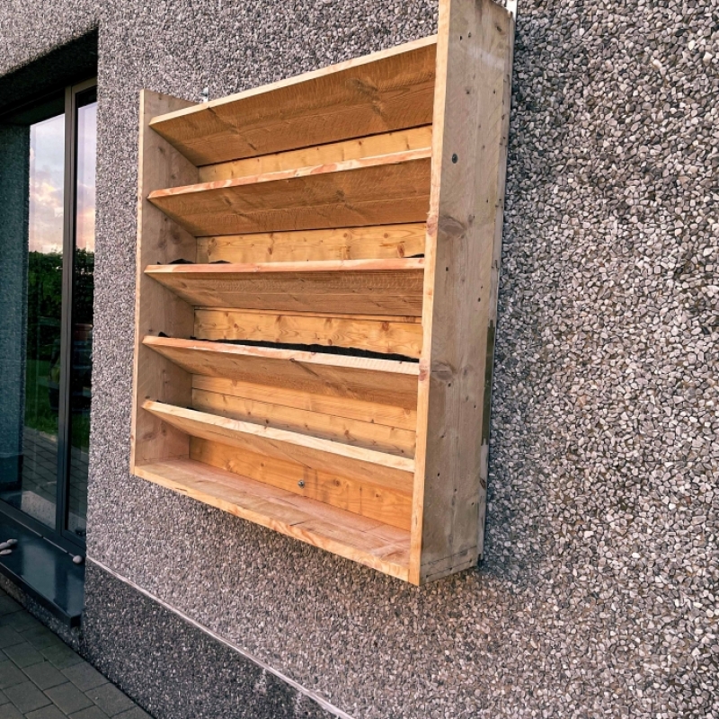 plaatsing even te behandelen met een zelfgekozen beits of houtolie. Hierdoor