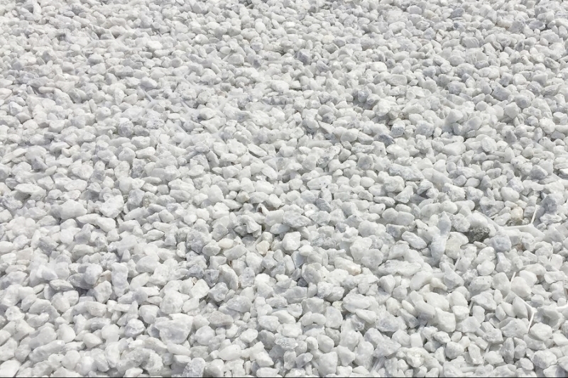 Door de gebroken vorm en hoekige structuur van de stenen, ligt Polar White split stabieler dan rond grind en zorgt het voor een strakke, moderne en luxe uitstraling die veel licht reflecteert.