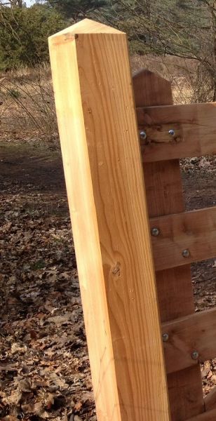 Deze poortpalen in houtsoort lariks passen perfect bij onze lariks weidepoorten. Deze lariks palen hebben oorspronkelijk een goudgele tot zalmroze kleur, maar zullen mooi vergrijzen na verloop van tijd voor een mooie, natuurlijke uitstraling. Deze palen kunnen niet allen als poortpaal gebruikt worden, maar ook als weidepaal of constructiepaal. Duurzaamheidsklasse 3: tot ca. 15 jaar, extra verlengd dankzij de postsaver. Afwerking: geschaafd en voorzien van een diamantkop. De lariks poortpalen zijn ter hoogte van het maaiveld/grond beschermd met een postsaver, waarmee de levensduur van de palen geoptimaliseerd wordt.