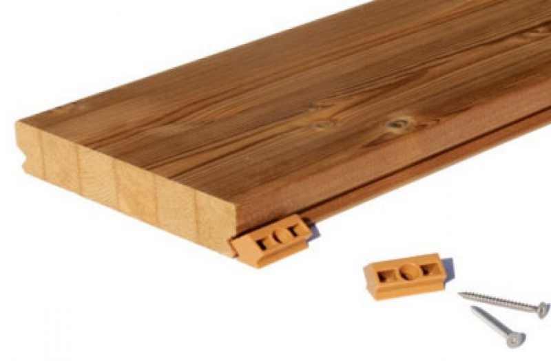 De clips worden geleverd in een handig doosje, compleet met de juiste inox schroeven. Eén verpakking bevat 100 clips, goed voor ongeveer 6 m² terras. Ze zijn geschikt voor thermowood terrasplanken met een breedte van 14,2 cm en 18,5 cm.