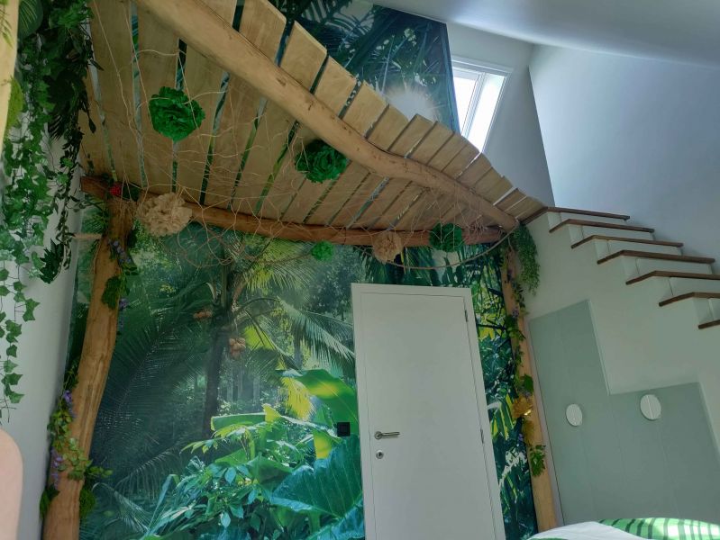 boomhutten, maar ook een naturelle gevel van een bijgebouw of paardenstal.