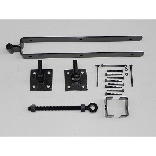 Deze set beslag met plaatduimen is speciaal ontworpen voor onze Engelse weidepoorten en boogpoorten, zowel in hardhout als in geïmpregneerd grenen.