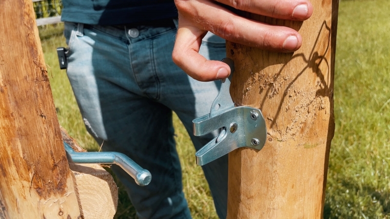 Voor de ophanging van één poort heb je telkens twee duimen en twee hengen nodig.