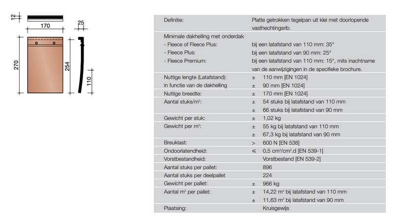 Deze tegelpannen zijn standaard 17 centimeter breed en 27