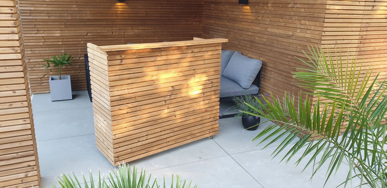 Het hout heeft een warme bruine tint dankzij de behandeling,