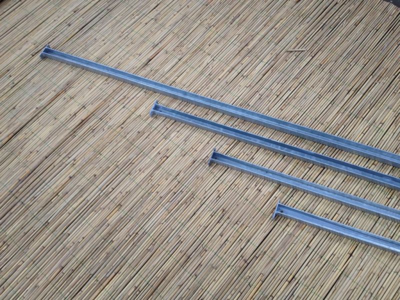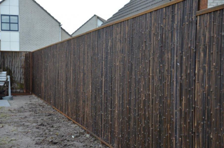 Door het boren van kleine gaatjes in het onderste profiel, kan regenwater weg. Hierdoor zullen de bamboestokken ook onderaan niet rotten.