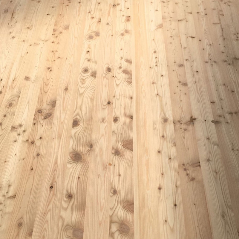 Onbehandeld en tweezijdig voorgeschuurd oppervlak. Lamellenbreedte 120 mm.