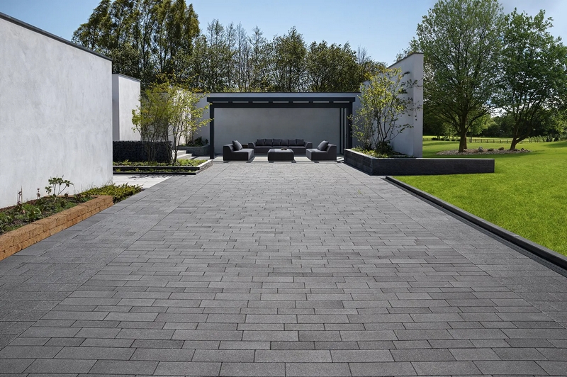 Duurzaam mooi: de facetafwerking en kleurechte uitstraling geven je terras of oprit een tijdloze look.